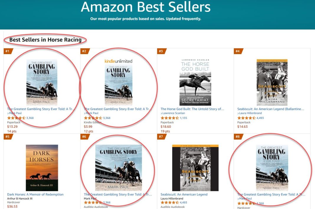 Mark continues to dominate the Horse Racing category. All four editions of his 5-year old book, including paperback, hardcover, Kindle ebook, and audiobook, frequently appear together in the top ten of the Horse Racing category.