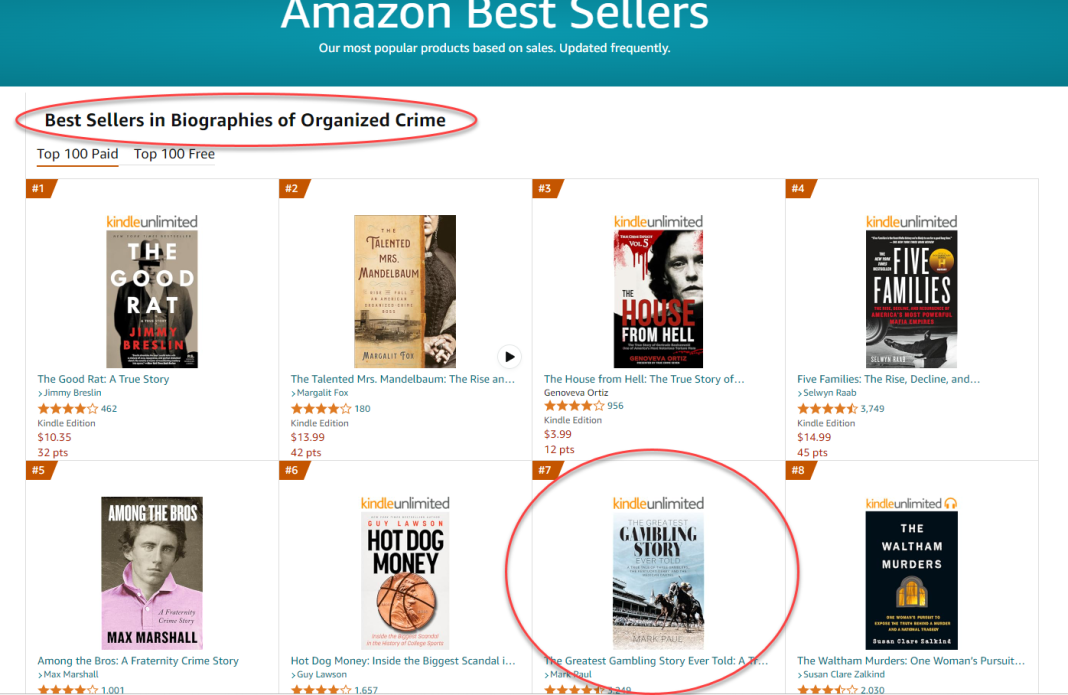 Since adding his book to the Organized Crime category, it has consistently hovered in the top ten of this competitive category. Mark says, “I sell more books being #7 in Organized Crime, than being #1, #4, and #5 combined in Horse Racing.”